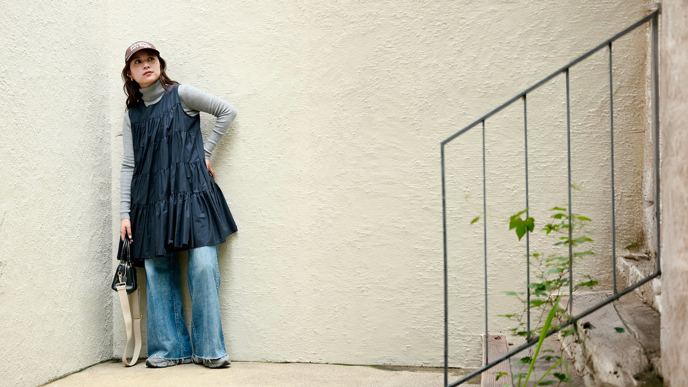 ティアード ノースリーブ ボリューム チュニック ワンピース ミニ丈