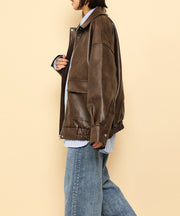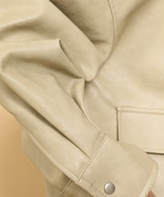 商品名:合成皮革 ステンカラー オーバーサイズ ヴィンテージライク ブルゾン