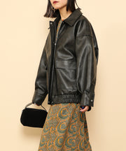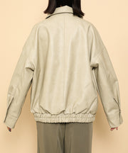合成皮革 ステンカラー オーバーサイズ ヴィンテージライク ブルゾン