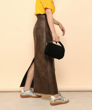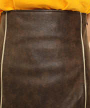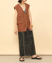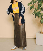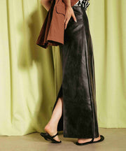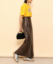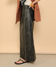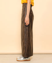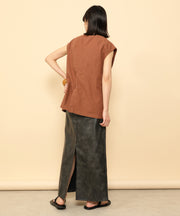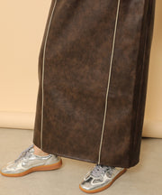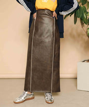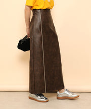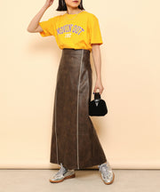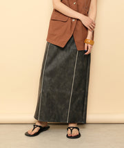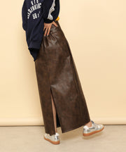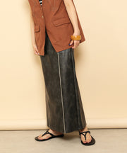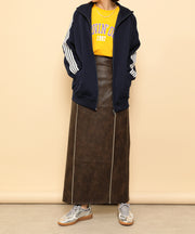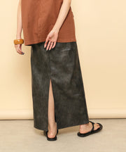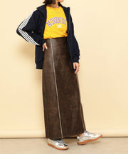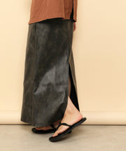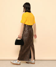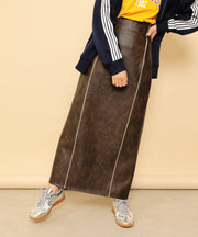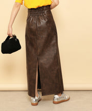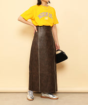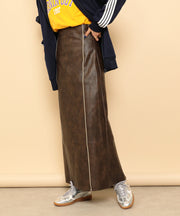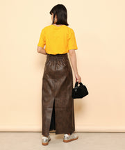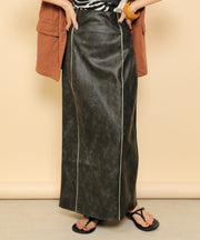 ・ツヤ感とパイピングが目を惹くナロースカート