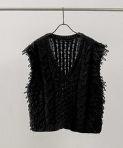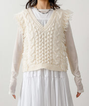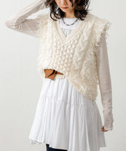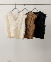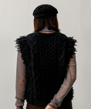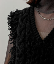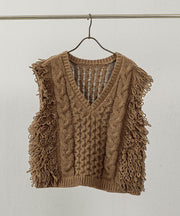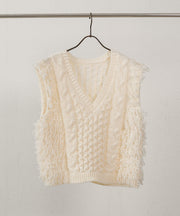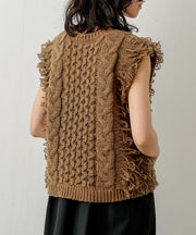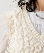 ・個性的なフリンジとケーブル編みの絶妙なバランスが