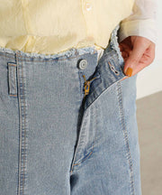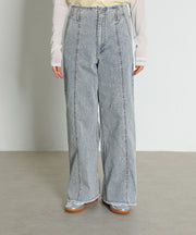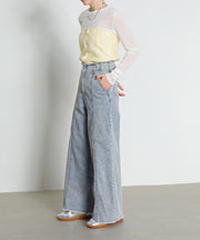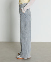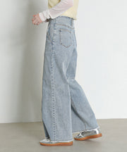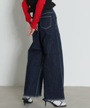【Iラインで美シルエット】ハイウエスト デニム ワイド パンツ