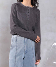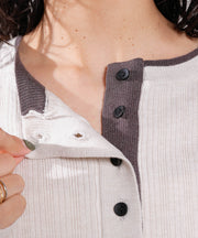 【重ねたような首元でこなれ感を演出♪】ヘンリーネックレイヤートップス
