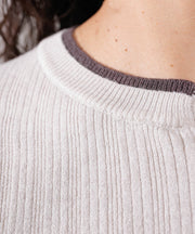 ・凹凸のあるリブが体のラインを拾いすぎず、