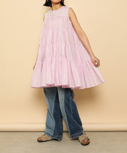 ティアード ノースリーブ ボリューム チュニック ワンピース ミニ丈
