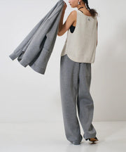 ・前あきのマニッシュな印象のベストに、デコルテをあけたボートネックを採用し、女性らしさをプラス