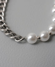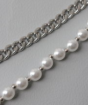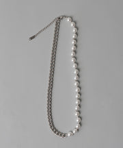 ・メタルチェーン×パールを組み合わせたミックスネックレス