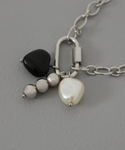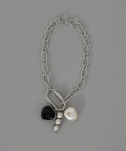 金属アレルギー対応 ハートモチーフ パール デザイン シルバーブレスレット サージカルステンレス