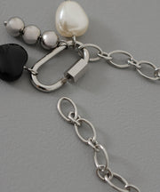 商品名:金属アレルギー対応 ハートモチーフ パール デザイン シルバーブレスレット サージカルステンレス