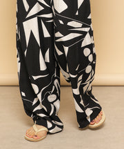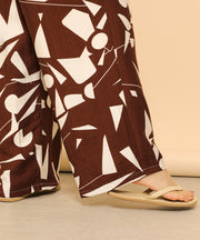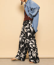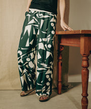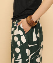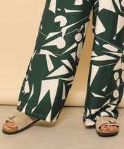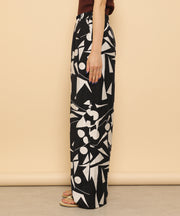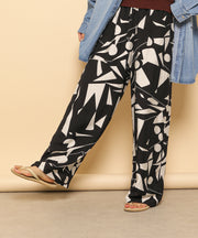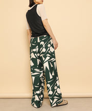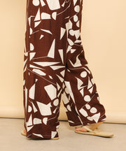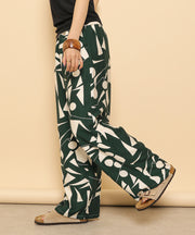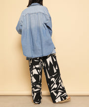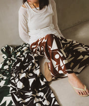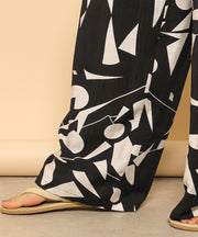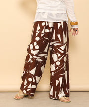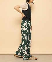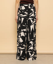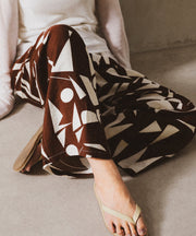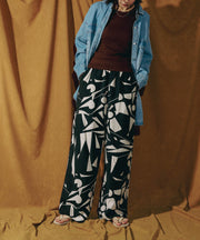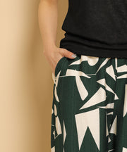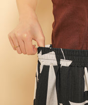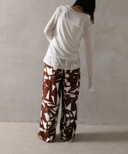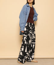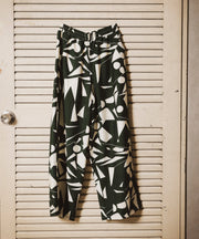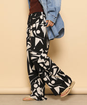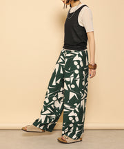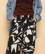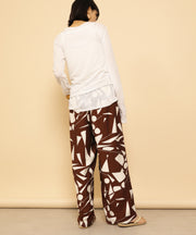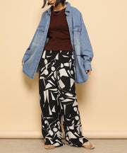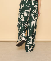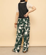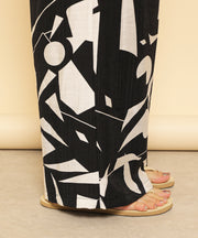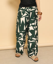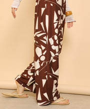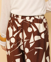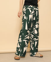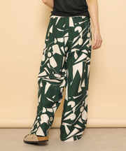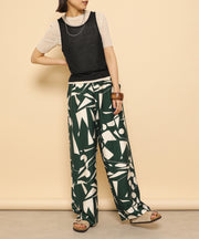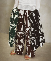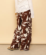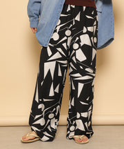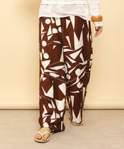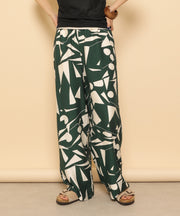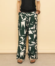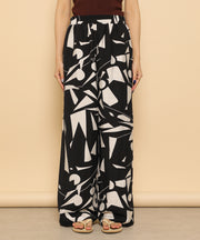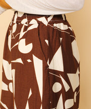 リネンタッチ 幾何学柄 イージーワイドパンツ