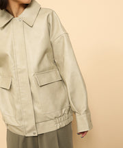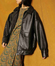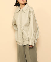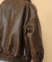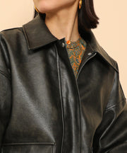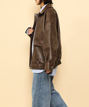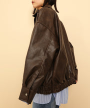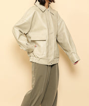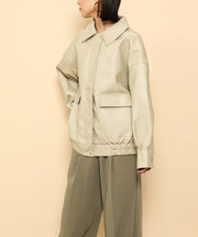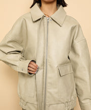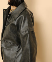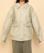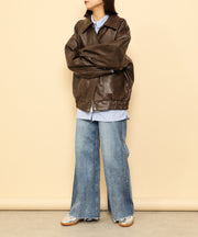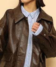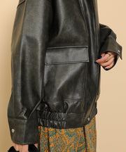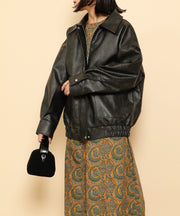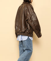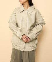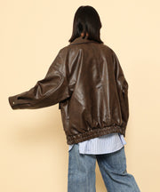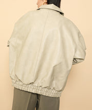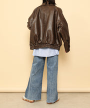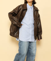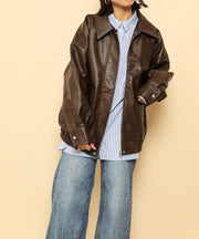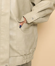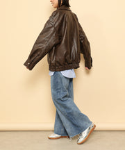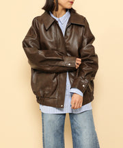 合成皮革 ステンカラー オーバーサイズ ヴィンテージライク ブルゾン