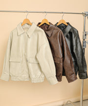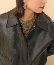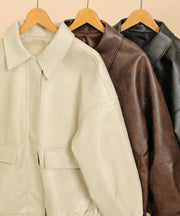 商品名:合成皮革 ステンカラー オーバーサイズ ヴィンテージライク ブルゾン