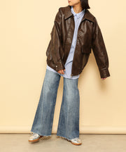 定番の合成皮革ブルゾンもトレンドのビッグシルエットで