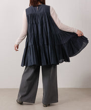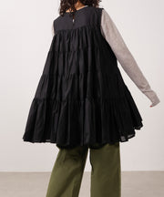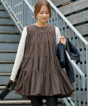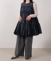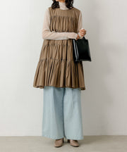 ティアード ノースリーブ ボリューム チュニック ワンピース ミニ丈